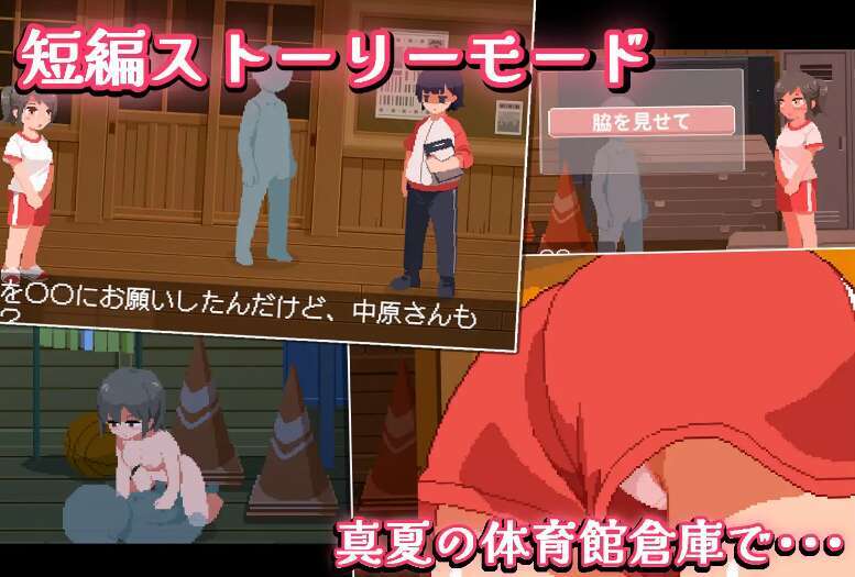 ○ 在故事模式中,你可以体验色情事件,而在画廊模式中,你可以使用换装功能来玩耍。由全篇像素艺术表现的『思春期的黑发少女和密室色情!~真夏的体育馆仓库篇~』